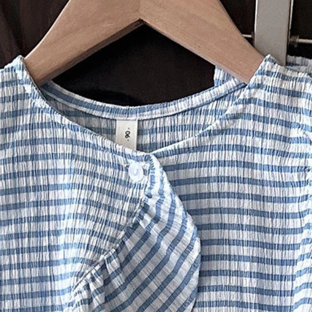مجموعة قميص وسراويل قصيرة الأكمام للرضع والأطفال الصغار ، نمط مخطط عمودي ، طباعة كاملة ، ثلاثة ألوان ، الصيف ، 2 *
