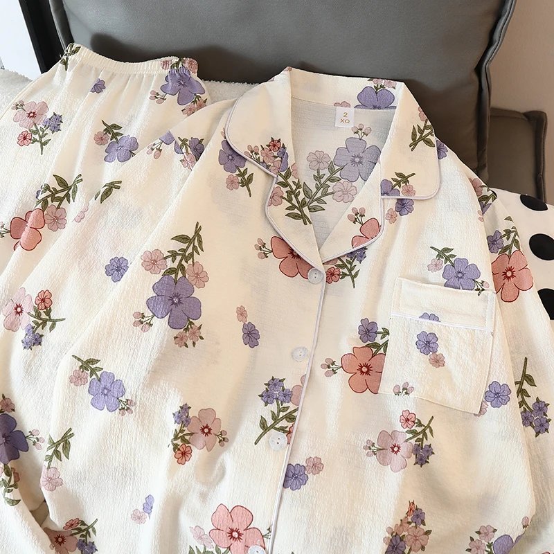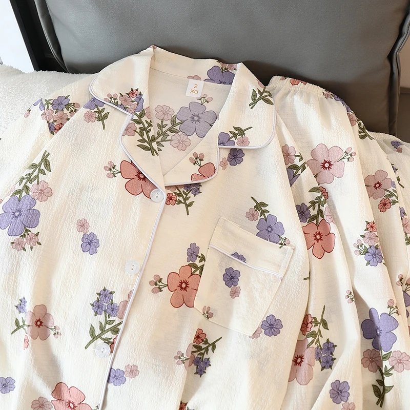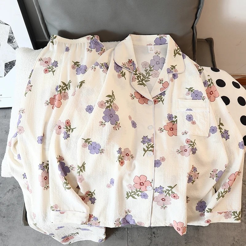 طقم توب وبانت نسائي بأكمام طويلة ، بيجامة كاواي لطيفة ، طباعة زهور ، ملابس منزلية ، ملابس نوم ، ملابس صالة ، خريف ، جديد ، 2 * *