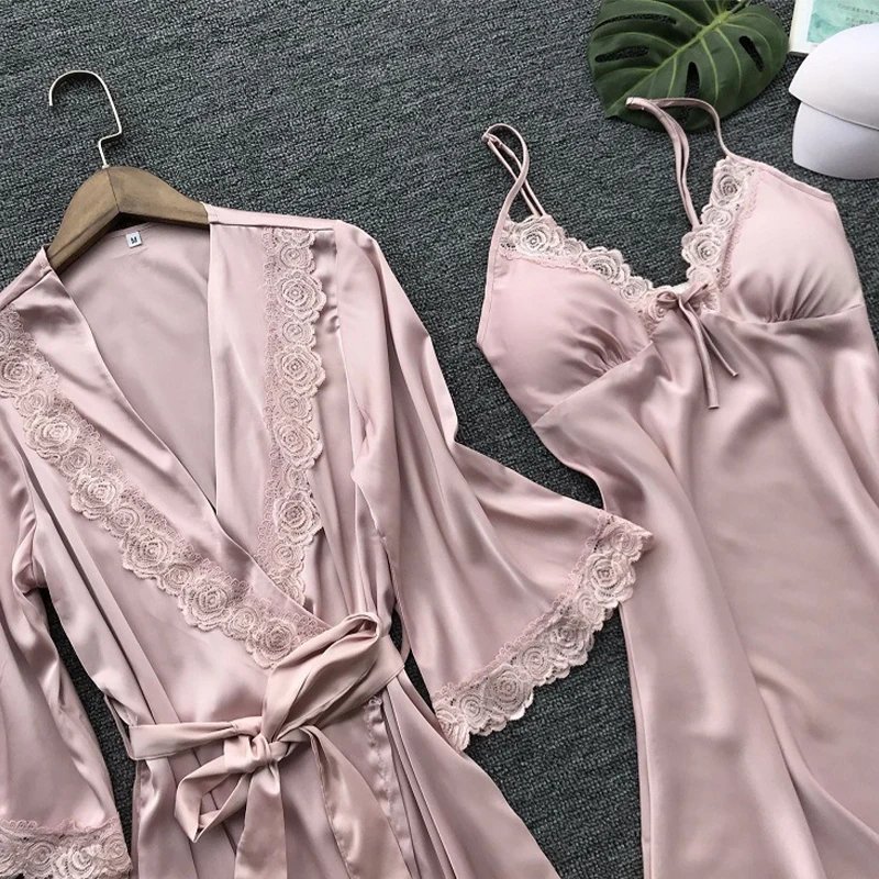ملابس نوم نسائية بخطوط شبكية ، بيجامات فاخرة من الحرير الجليدي ، ملابس نوم ناعمة بأكمام طويلة ، ملابس منزلية نسائية للربيع والصيف بحجم كبير أطقم بناطيل طقم بيجامات بجايم ملابس النوم بجايم نسائيه قمصان النوم بجامات
