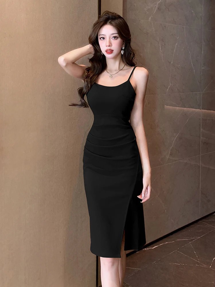 فستان ماكسي أسود للنساء أنيق للحفلات الصيفية فستان مثير بدون أكمام بدون ظهر مكشوف الأكتاف ملابس الشارع الشهير فستان نحيف للنادي