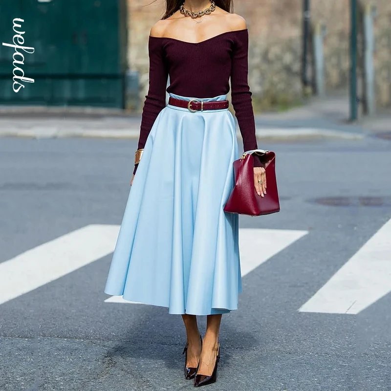 كن أول من يقيم “Wefads الخريف المرأة 2 قطعة أنيقة الصلبة طويلة الأكمام قبالة الكتف حمالة الخامس الرقبة البلوز أعلى فضفاض تنورة طويلة مجموعات مع حزام” إلغاء الرد